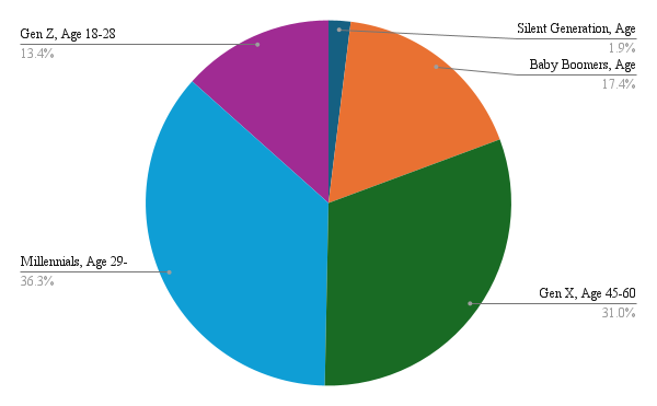 If you said Millennials, you're right! People ages 29 to 44 make up 36% of all registered Greens in Oregon. Young voters are also looking to the Green Party. 13% of registered Greens in Oregon are Gen Z, and a significant portion of that generation still isn't old enough to vote.