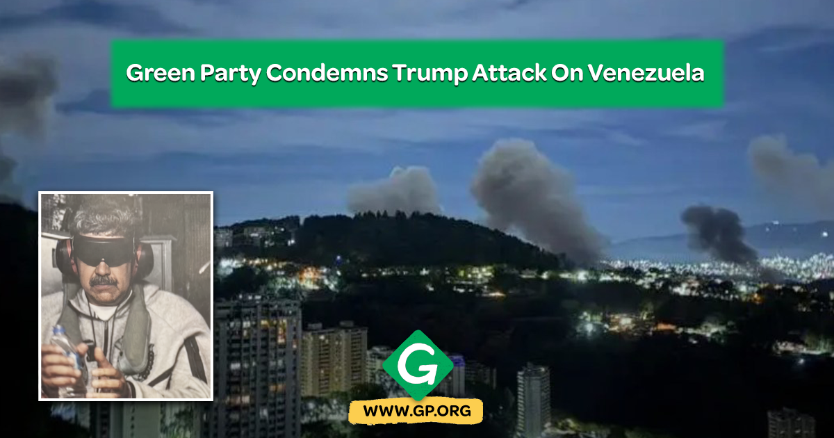 The Green Party condemns the kidnapping of the Venezuelan President and his wife and demands their immediate release. We strongly oppose this illegal act of war which violates both the US Constitution and international law. Congress needs to immediately commence impeachment proceedings against Trump.